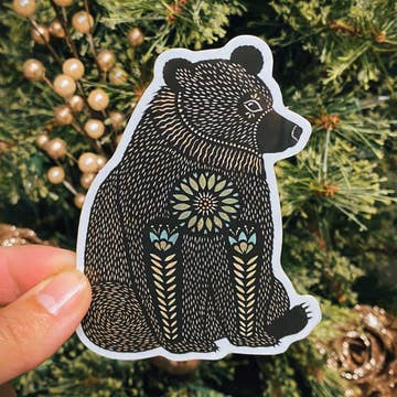 This sticker measures 3.5x2.38 inches Original and hand-drawn illustration by Kayla Fain Every sticker is made of durable premium weatherproof vinyl that is able to withstand exposure to wind, rain and sunlight. Perfect for cars, electronics and water bottles. Each sticker is resistant to fading, scratching, tearing, and water as well as dishwasher safe.