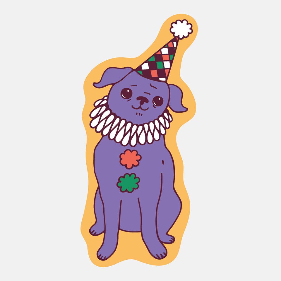 Our sweet girl Stevie in her latest costume! - approx 2.5-3 inch matte printed die cut single sticker - vinyl stickers are super durable, waterproof and weatherproof - great to decorate a water bottle or laptop! - arrives loose - printed in the USA with eco solvent ink, assembled in our Los Angeles studio