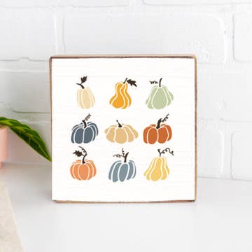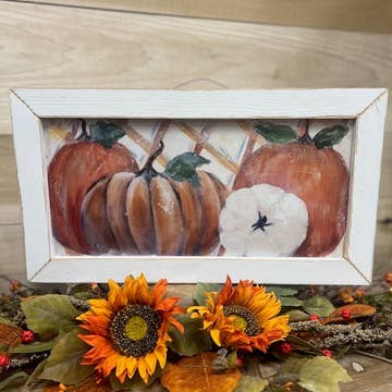 Introducing a whimsical masterpiece that captures the essence of autumn's charm! Surprise a friend or family member with this heartfelt and artful present for housewarmings or any occasion that warrants a touch of autumn-inspired delight. • Printed with vivid colored inks on cotton canvas mounted on wood • Solid hardwood frame in shown stain colors • Sustainable American oak or alder wood • Made in the USA in our Utah studio • MINI 6" tall x 6" wide x 1.25" deep w/ 1/4" thick frame • SMALL 11" tall x 11" wide x 1.25" deep w/ 1/4" thick frame • MEDIUM 15" tall x 15" tall x 1.5" deep w/ 3/4" thick frame • LARGE 22" tall x 22" tall x 1.5" deep w/ 3/4" thick frame • Signs may have +/-1" variations • All signs can stand on a shelf or table (Medium & Large can also hang on a wall) • Farmhouse style frames have small rustic imperfections that make them unique