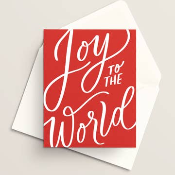 "JOY is all around us" Christmas Greeting Card Blank white interior, ready for your own unique message. Printed on premium, FSC certified-sustainable paper. Coordinating premium, shimmered Jupiter Red envelope included. Packaged in clear acetate sleeve.