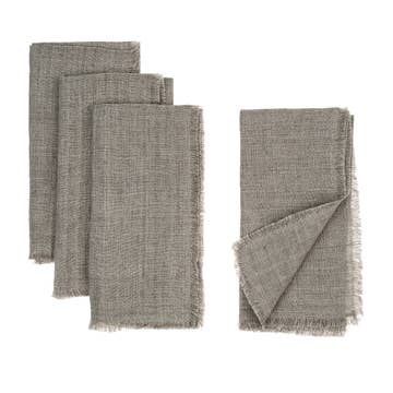 Bring a touch of sophistication and luxury to your dining occasions with the Villeroy and Boch Manufacture Rock Napkin Set of 4. Experience the perfect blend of classic design and modern craftsmanship, allowing your dining table to become the canvas for unforgettable moments. Crafted from 100% cotton slub, these napkins epitomize opulence and are designed to elevate your dining experience. Available in three classic colorways, each one exuding its own distinct charm: white with contrasting black embroidered merrow-stitched edge, taupe with black embroidered merrow-stitched edge, and solid black with white embroidered merrow-stitched edge. These color combinations add a touch of refinement to any table setting, making them the perfect complement to various dining decors, including contemporary, transitional and modern. Measuring a generous 21 inches by 21 inches, these napkins offer both practicality and style. Whether you're hosting an intimate dinner party or a holiday gathering with family and friends, the Villeroy and Boch Manufacture Rock Napkin Set is the perfect accent to any tablescape. Pair the set of four cloth napkins with our Manufacture Rock placemats and the Manufacture Rock dinnerware collection, including plates, bowls, utensils and more for the complete look.