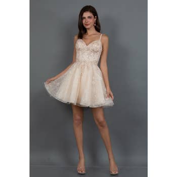 Strapless Floral Lace Embroidery Mini Dress -Strapless mini dress with delicate lace embroidery -Flattering A-line silhouette that enhances a feminine shape -Floral lace adds romantic and elegant detail -Back zipper closure ensures easy and secure wear -Ideal for parties, bridal showers, or romantic celebrations -Model is 5'9.5" and is wearing a size small SELF: 90% POLYESTER 10% NYLON LINING1: 100% POLYESTER LINING2: 96%POLYESTER 4%SPANDEX