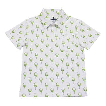 Elevate your little one's preppy style with our Green Tractor Golf Shirt. This collared shirt features an adorable embroidered tractor, adding a playful touch to a classic look. Perfect for any occasion, it's a comfortable and stylish choice for your little boy's wardrobe.