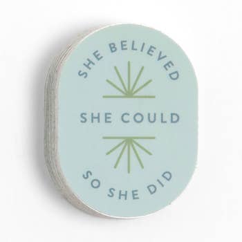 A classic and very accurate quote from Louisa May Alcott. 3" diameter vinyl sticker. Part of our Floral Nothing is Impossible collection. Made in the USA Water and dishwasher safe. 3" diameter -- please note this sticker has a wavy border