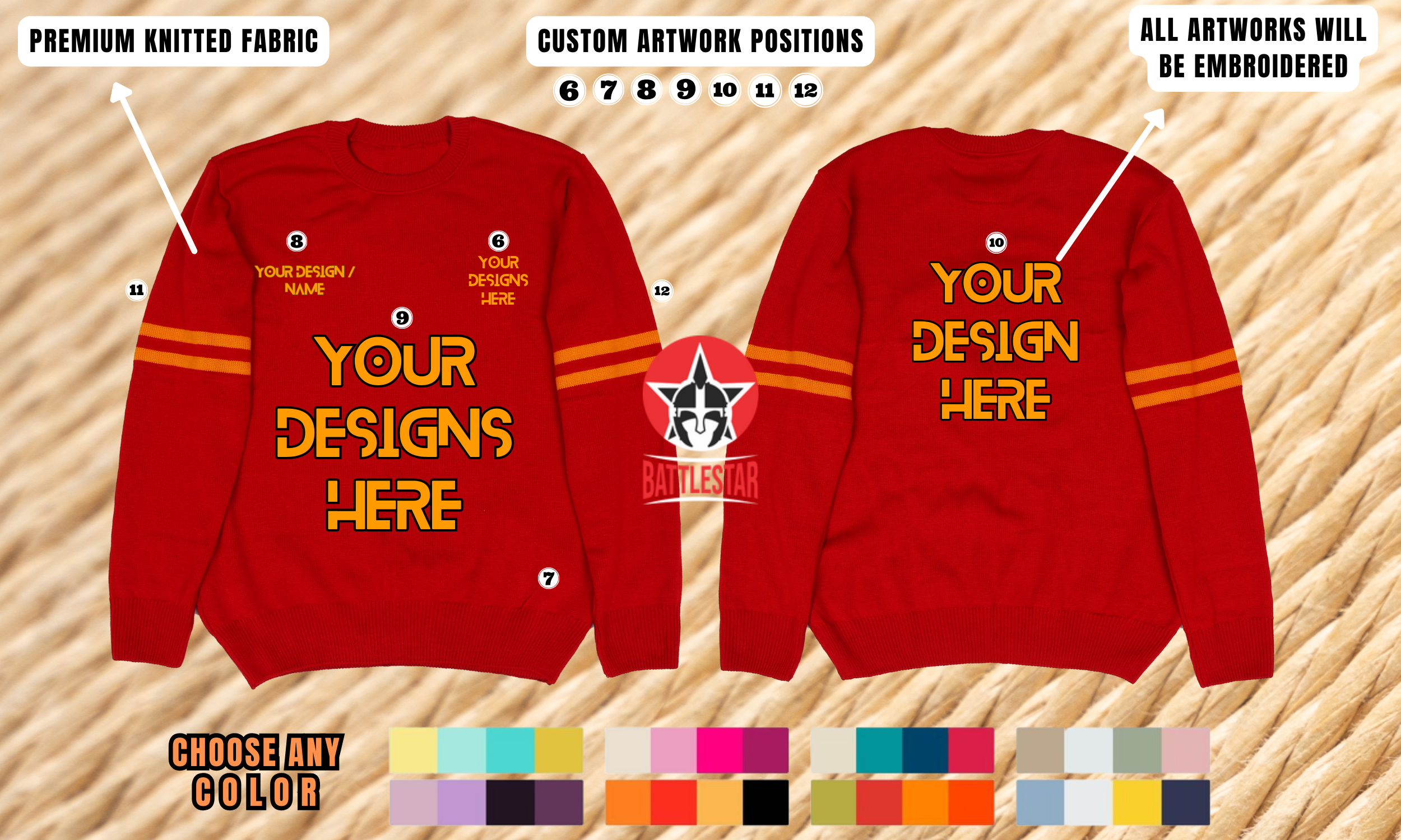 You can Tailor this Premium Cardigan Sweater to Meet Your Unique Needs and Preferences. It is made of premium Knitted Fabric. Please Provide the Following Details with Your Order in the Instructions Box. 1. Color for the body 2- Color of closure stripe and Cuffs/Bottom 4- Buttons Color Also provide the custom artwork details, such as: 1- School Letter 2- The Year of Graduation 3- Font and name 4- Additional artwork and positioning information Please Also Mention your Desired Jacket Size. We will first create a mockup based on the information you will provide before proceeding with the production of your Sweater. The artwork will be applied to your Cardigan Sweater in the form of high-quality Embroidery. You can ask for your custom size. Please contact us for further information or a bulk quantity discount.
