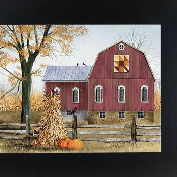 "Summer Days" By Billy Jacobs, Ready to Hang Framed Print, Black Frame BJ1036B-405 "Summer Days" by artisan Billy Jacobs. This 15x11 Black framed print of a big red barn in summer. Lush summer greenery and beautiful songbirds sitting on a barbed-wire fence, tiger lilies frame this beautiful red barn on a grassy hillside. This totally American Made wall decor item features a decorative black frame. The framed art print has a protective, archival finish (glass is not needed) and arrives ready to hang.