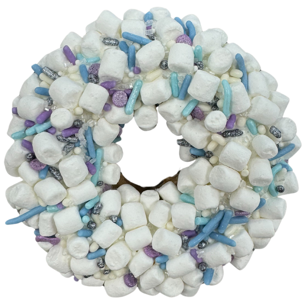 Your heart will melt with our new spin on the ever popular GRINCH donut. Perfect for the holiday season, our Grinch donut is bright and colorful, with red hearts representing the true meaning of Christmas. "It comes without packages, boxes or bags. What if Christmas, perhaps, means a little bit more."