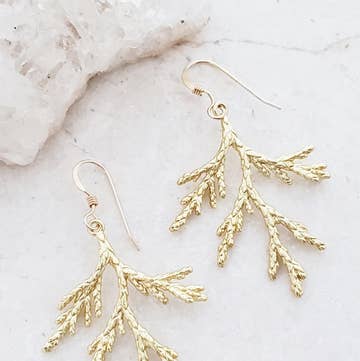 Large, lightweight metal tree branch earrings. Approximately 3.5" long including ear wires. Vintage design given new life in New England. Recycled brass tree branches suspended on secure, gold-plated "kidney" style ear wires. Our wires won’t hurt your ears and they won’t fall out. Nickel free. Love our earring styles but shiny gold isn’t your jam? Welcome to our raw brass line. A more organic, natural option designed to help you amplify your vibe. Still recycled and nickel free, and still made right here in New England with love. Raw brass will patina over time. Think of them as future heirlooms that will show the stories of their journeys with you. Keep them looking as they are by avoiding moisture and occasionally wiping them with a tarnish cloth, or let them go free and see how time transforms them.