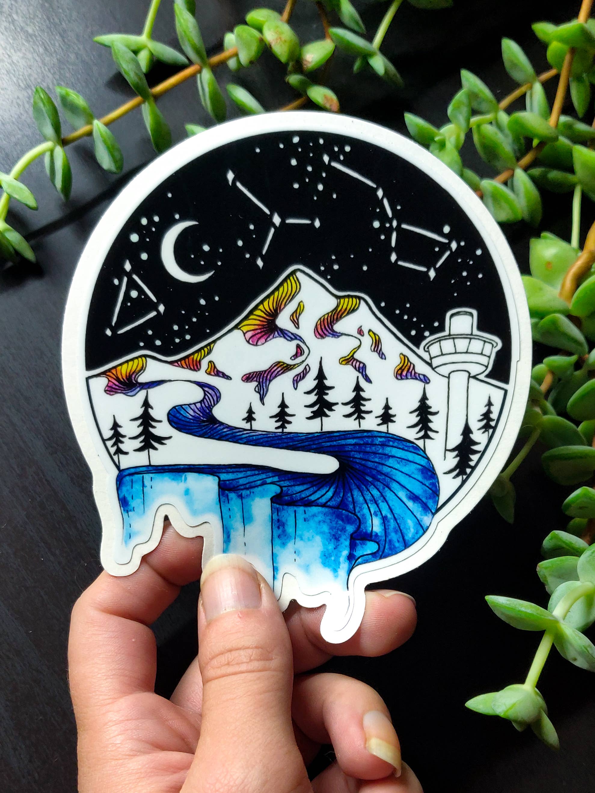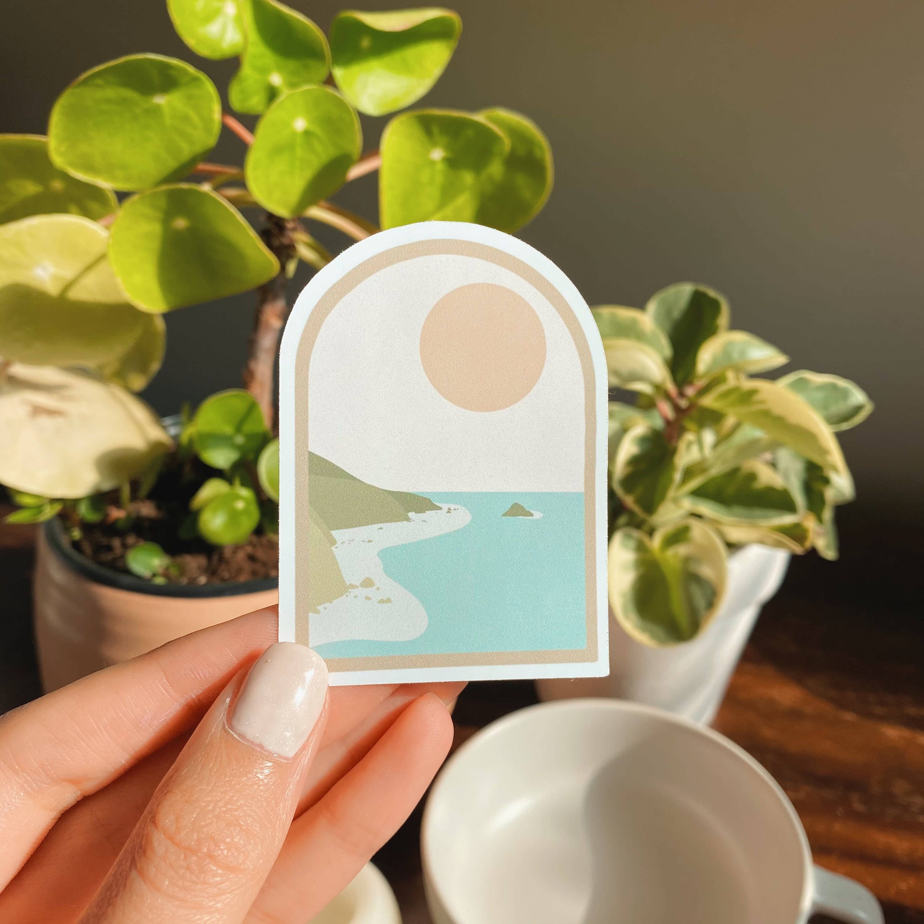 Created from an original pen and watercolor painting in my sketchbook, this design is inspired by the beach where I got married! Each large sticker measures approximately 4" wide. I actually print them at a local shop that I used to work at, and they are made from the same vinyl material used for vehicle graphics. All of my stickers are printed on thick, durable vinyl with UV laminate for all weather protection. They are waterproof and scratch resistant, so they should hold up wherever you want to stick them!