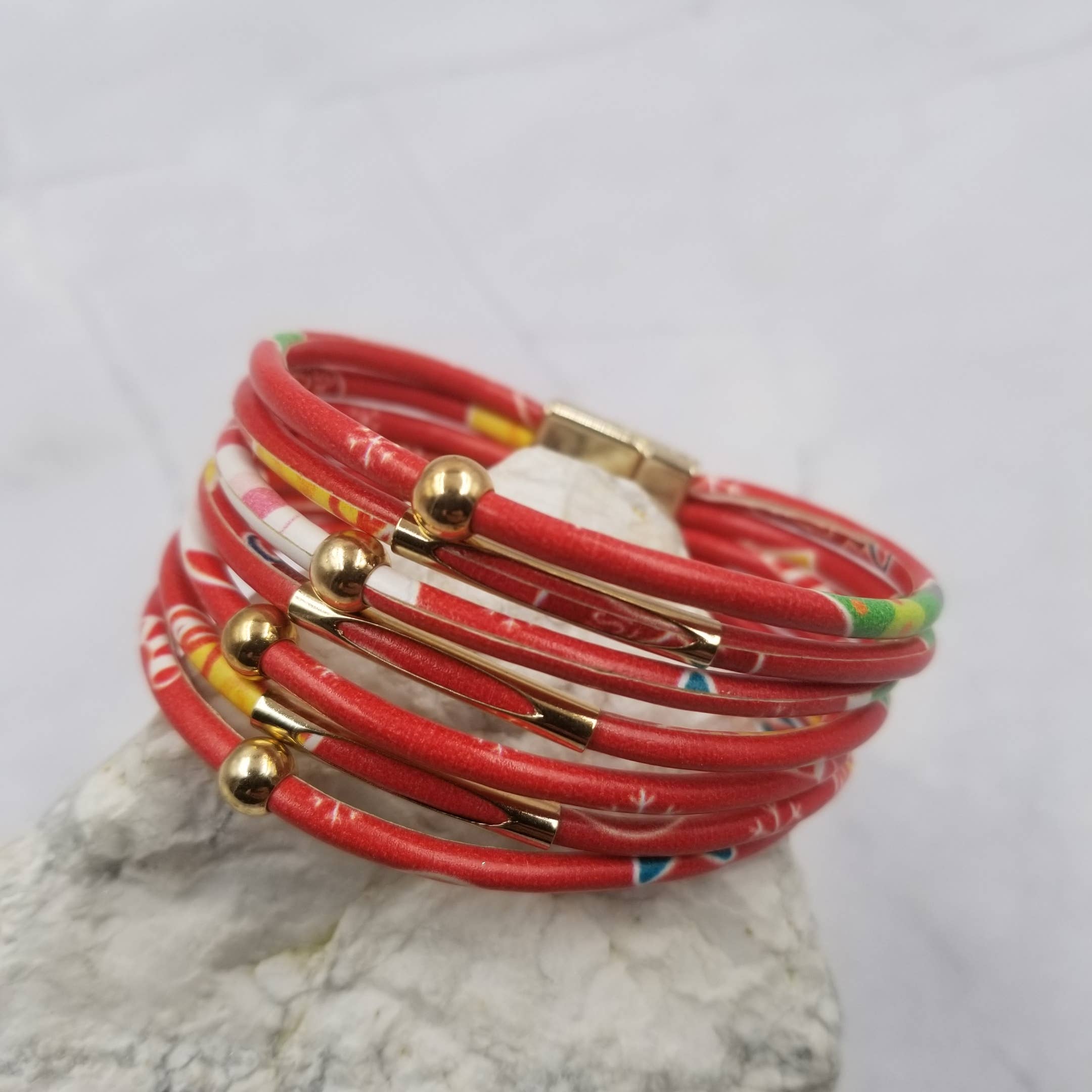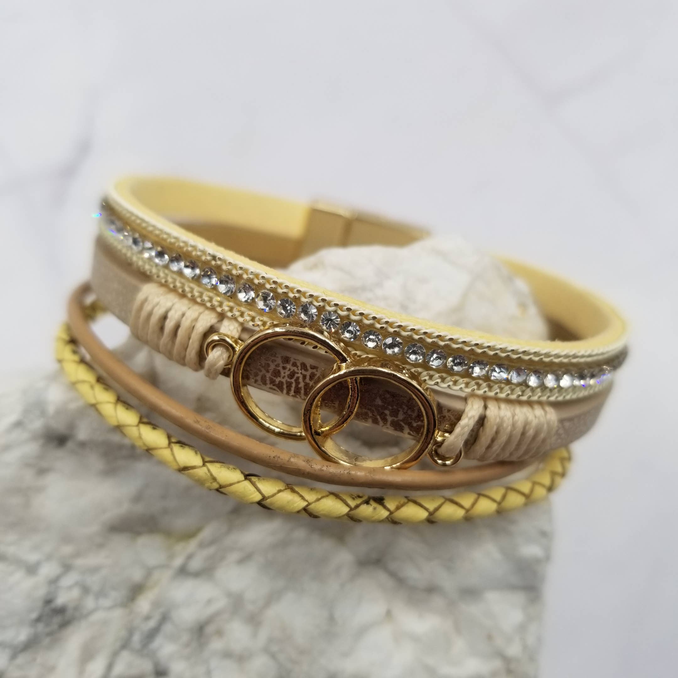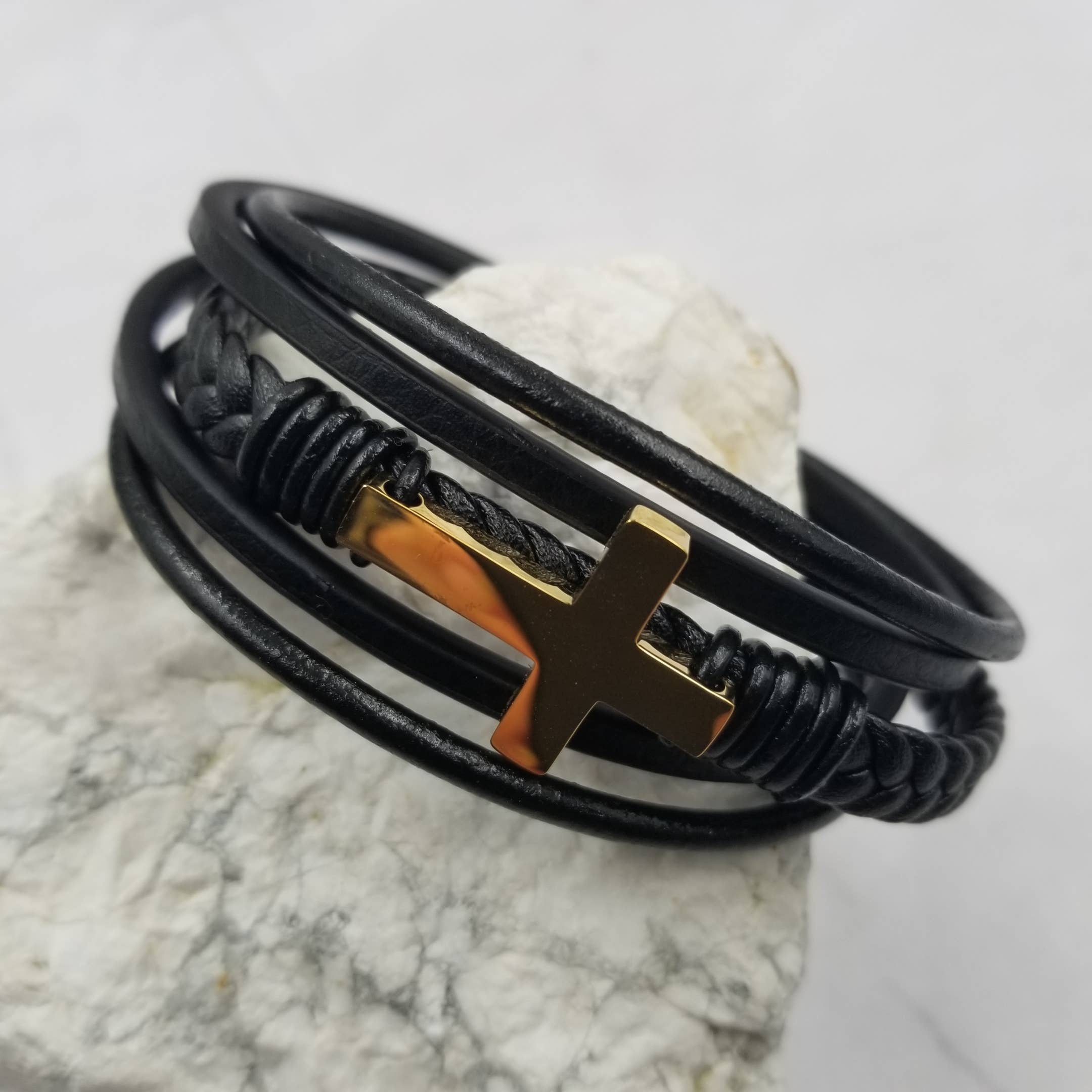 Cross Layered Leather Magnetic Bracelet