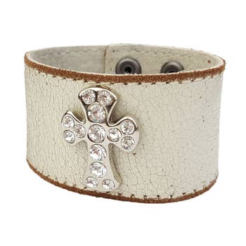 Layered and cross design Handmade With Magnetic Snap Silver plating process Leather and copper materials Bracelet size 19.5CM * 2.3CM Black,Silver,2 options