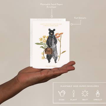 All Seedlings greeting cards have foil details and a PLANTABLE seed paper envelope which is embedded with wildflower seeds. This seed paper is made of a biodegradable eco-paper created with post-consumer materials - no trees harmed for this paper! When planted, our envelopes compost away leaving only flowers behind. Blank inside, our cards are printed on premium paper and are all accented with foil details. All Seedlings cards are made in the U.S.A. Need a display? Order BOUDIS48 for a 48 pocket spinner or BOUDIS24 for our 24 pocket spinner. All of our cards are also available with NO cello. Message us if you want your cards naked! Card size: 4.25" x 5.5" Env: 4.3125" x 5.75" (A2)