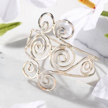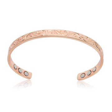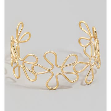 A minimalist floral cuff featuring hand-stamped ivy and cosmos flower designs across the center. This botanical aluminum bracelet is lightweight, hypoallergenic, and non-tarnishing — perfect for everyday wear. Each detail is hand-stamped with care, creating a simple yet artful piece that adjusts to fit most wrist sizes. Measures 3/8" x 6"