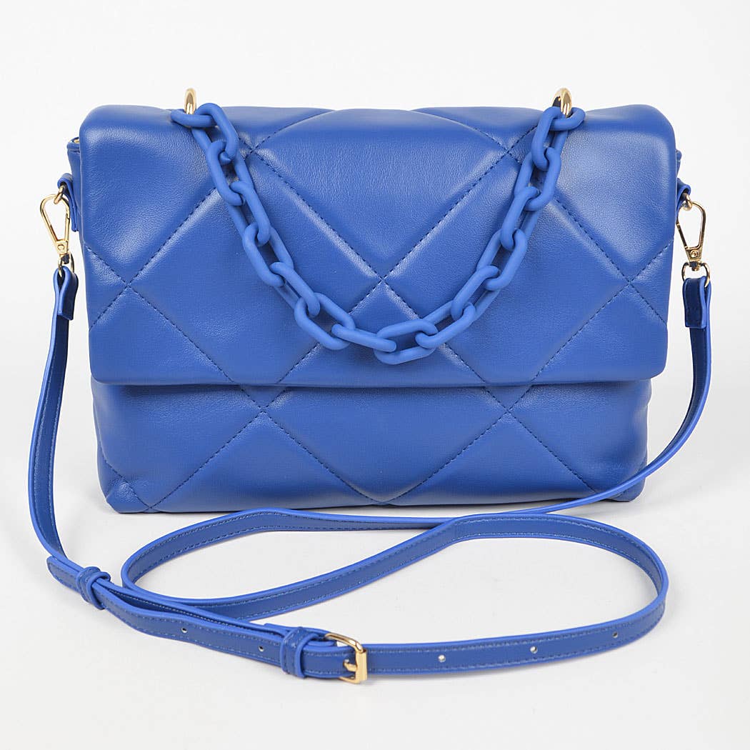 Item Details: -Style: M2417 Lala Quilted Chain Crossbody -Type: Quilted Puffer Style Crossbody -Closure: Snap Closure -Material: Not specified Details: -Quilted design -Open inner pocket & zipper pocket -Adjustable/detachable crossbody strap -Removable chain strap Dimensions: -Length: 10 inches -Height: 6 inches -Depth: 3 inches Fall/Winter collection The M2417 Lala Quilted Chain Crossbody is a chic and versatile accessory designed to elevate your everyday style. Featuring a quilted puffer-style design, this crossbody bag adds a touch of sophistication to any outfit. Its snap closure ensures easy access to your belongings while keeping them secure.
