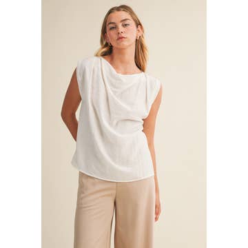 - Unique One-Shoulder Design: Features a stylish asymmetrical neckline for a modern, fashion-forward look. - Wave Texture Detail: Adorned with delicate wave-like textures, adding depth and sophistication. - Soft and Lightweight Fabric: Crafted from soft, breathable material for ultimate comfort and ease of wear. - Form-Flattering Silhouette: Tailored fit to accentuate your natural curves while maintaining a sleek profile. - Versatile Styling: Perfect for pairing with jeans, skirts, or tailored pants for a chic day-to-night transition. - Model is 5' 7.5" 33-24-34 and wearing a size Small This top is a timeless piece that effortlessly combines elegance and contemporary style, making it a must-have addition to your wardrobe.