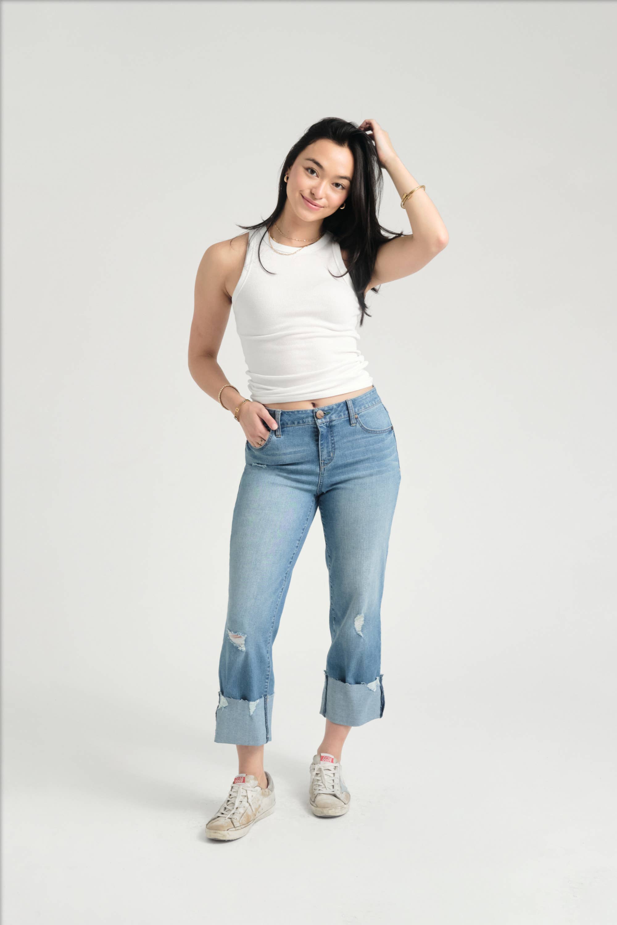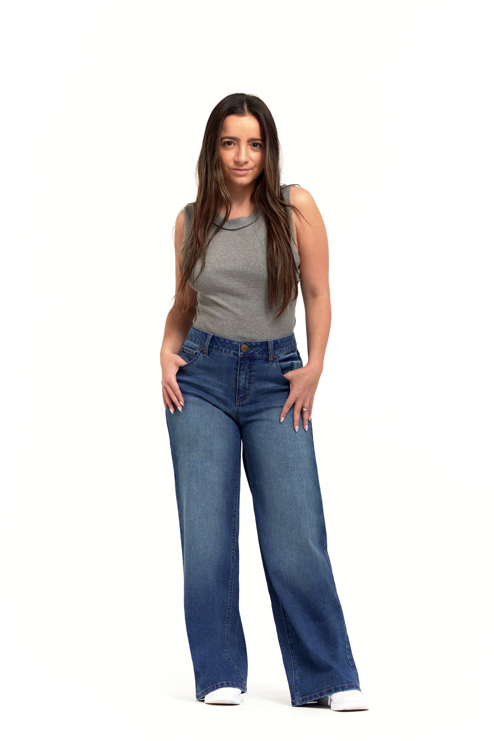 You asked for new styles with our MAGIC WAISTBAND, we provided! Introducing our newest Shapewear Jean to our collection. This style features the perfect straight leg, a hidden elastic magic waistband, complete with a fray hem, and all the while, it's contouring your body without you even noticing. The perfect essential and every day jean, versatile, comfy, stretchy, what can be better? It's also Sustainable and crafted with Tencel fibers making it planet friendly as well 🌍♻️ Available in our beloved Grayden wash, the perfect wash for every season. Rise: 10.5" Leg Opening: 15.5" Inseam: 30" Care: Machine washable, Hand wash, Dry clean, Spot clean, Wipe clean, Machine Wash Cold Country of Origin: Imported Size: Model is wearing a size 27 Fit: Straight Rise: High-rise Closure: Zipper fly with button closure Pockets: 2 front pockets, 1 coin pocket, 2 back pockets Features: Rivets, 1822 Charm SKU: C88C2444A3-36G WASH: Grayden