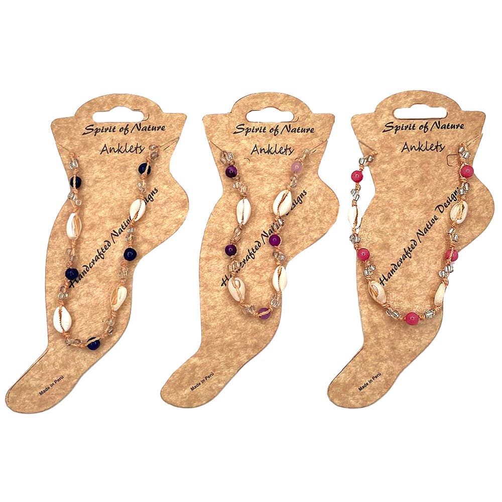 Chip stone, seed bead, and woven macrame single strand pull tie anklet. One size fits all with adjustable pull tie strings. Anklet is lightweight providing a comfortable fit. • Item code: CH-PT-AKS • One size fits all. • Materials: Stone, Seed Bead, Thread • Handmade in Peru. Contact us or search our catalog to order custom display(s) of this product. Disclaimer: Each one of our products are handmade and unique. When ordering wholesale, customer will receive ASSORTED COLOR, AND/OR PATTERN variations of the product.