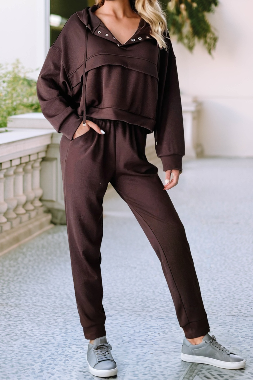TWO PIECE SET FEATURES CROP HOODIE WITH PULL STRING AND MATTE SILVER RING. LONG SLEEVES WITH RIBBED CUFFS. MINI SHORTS FEATURES RIBBED STRETCH BAND WITH FRONT PULL STRING AND SIDE POCKETS. (PRINT IS AS SHOWN ON THE IMAGE) (WASH INSTRUCTIONS: COLD DELICATE/GENTLE WASH. HANG DRY ONLY.) SELF: 60% COTTON 40%POLYESTER MADE IN VIETNAM