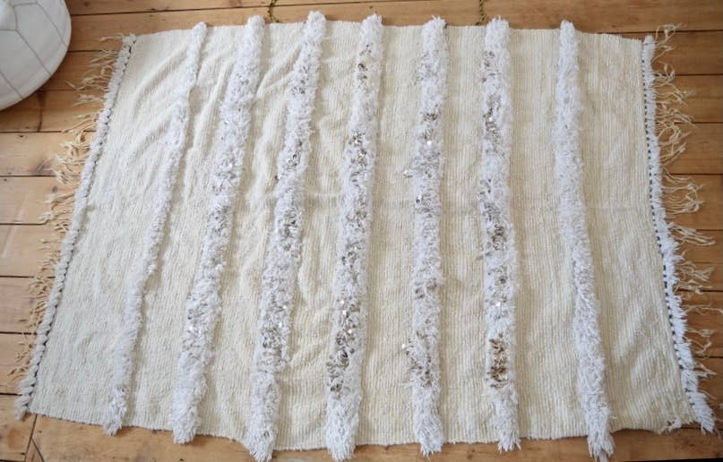Berber woman from Morocco made these beautiful blankets as gift for the bride on her Wedding day. Dimensions 122 x 184 cm Material Cotton Trim Sequins Cotton bands Origin Morocco