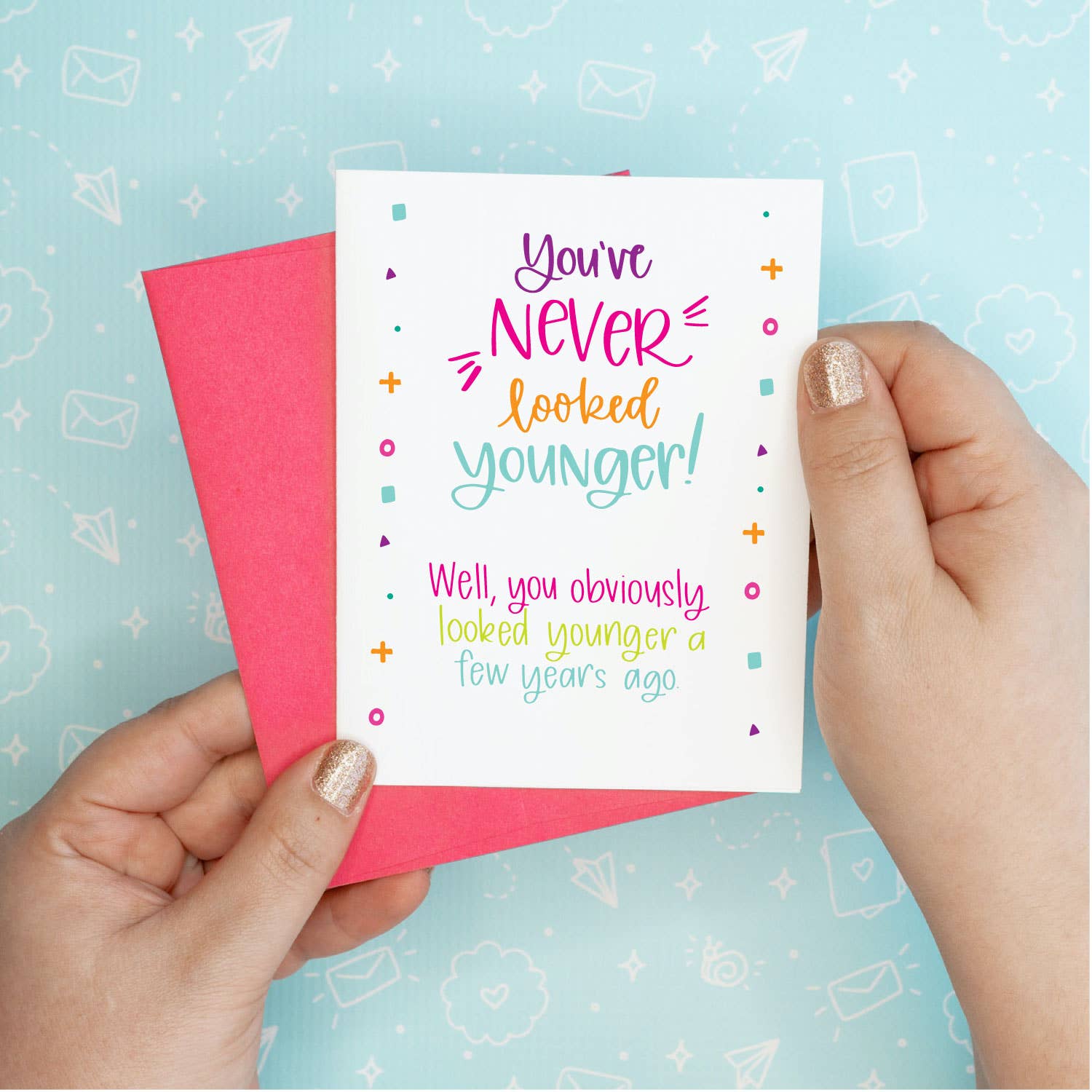 6 professionally printed blank inside greeting cards + envelopes. All of our cards are size A2 (about 4.25” x 5.5” in dimension) and designed, printed, packaged and shipped in-house from our Northern Kentucky/Cincinnati studio. We use eco-friendly paper and envelopes and do have the ability to ship without plastic packaging if requested. Otherwise, we package each card in a resealable cello bag. Themes: greeting card, snarky humor, funny card, old age, birthday card, hand lettering, calligraphy, snail mail, humorous card, humor, silly card, getting old, funny birthday card, friendship birthday, birthday suit, teenager, teen