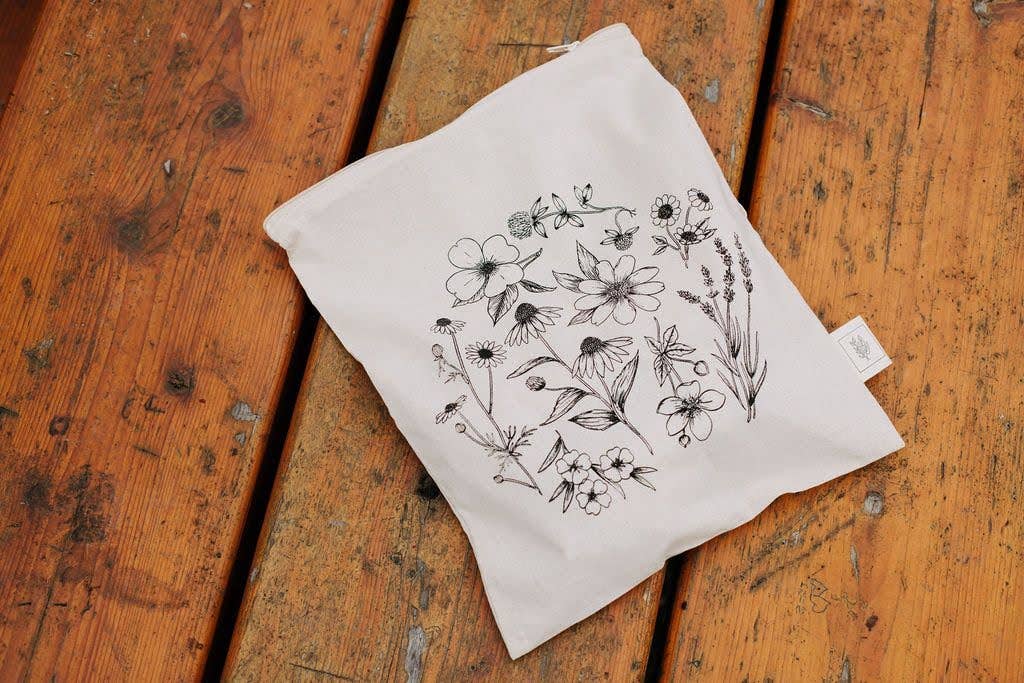 Medium snack bags hold 2 cups - think yummy flatbread, fresh veggies, or a couple of handfuls of chips. These bags are also great for art supplies, toiletries, and keeping your cosmetics organized!Made in CanadaFeatures:Easy zipper closureSize: 5" x 8" Easy to clean: flip it inside out or pull the lining out - machine wash cold/low dry or hand wash & leave to dry Specifications:Lead and nickel free zipper100% cotton outer, polyurethane laminate linerTested and certified to meet both FDA and Health Canada food safety standards