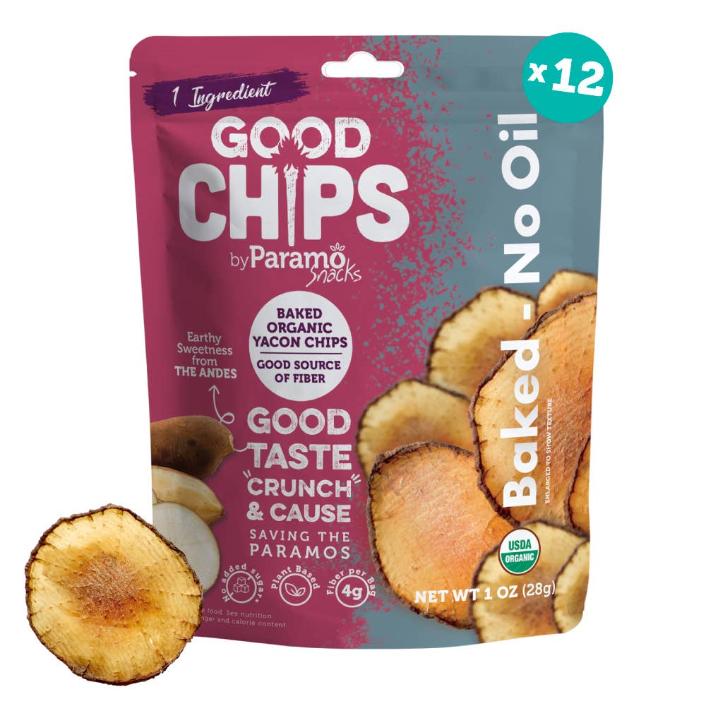 Real Sweet Plantains baked into deliciously thin crunchy chips. NATURALLY HEALTHY SNACK: Baked, never fried. No added sugar, oils or preservatives. Non-GMO. Gluten free. Vegan. One ingredient only. Low-Calorie snacking. A healthy fruity choice to snack at home, school, work or on-the-go. Case pack INCLUDES: 30 (0.7 oz) single serve bags of Sweet Plantain chips. CLIMATE ACTION: 2% of the sales supports small-scale farmers in their reforestation efforts of the Andean cloud forests and the restoration of Paramos’ unique ecosystems. SOCIALLY RESPONSIBLE: Fair trade, small-scale and sustainable farming. Especially made for CRUNCHAHOLICS! The perfect amount of crunch & texture, with a delicious taste, to cheer up your day! GOOD CHIPS = Good Taste + Good Crunch + Good Cause.