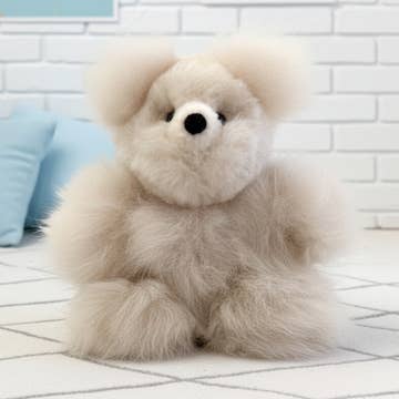 Our line of cute alpaca fur teddy bears are made from natural and ethically-sourced alpaca fur from Peru. Alpaca fur is an ideal material for soft toys since the fur is a hollow fibre, so it’s super cosy and warm yet lightweight. It’s incredibly soft and fluffy. Alpaca fur is lanolin-free so our teddies are hypoallergenic.