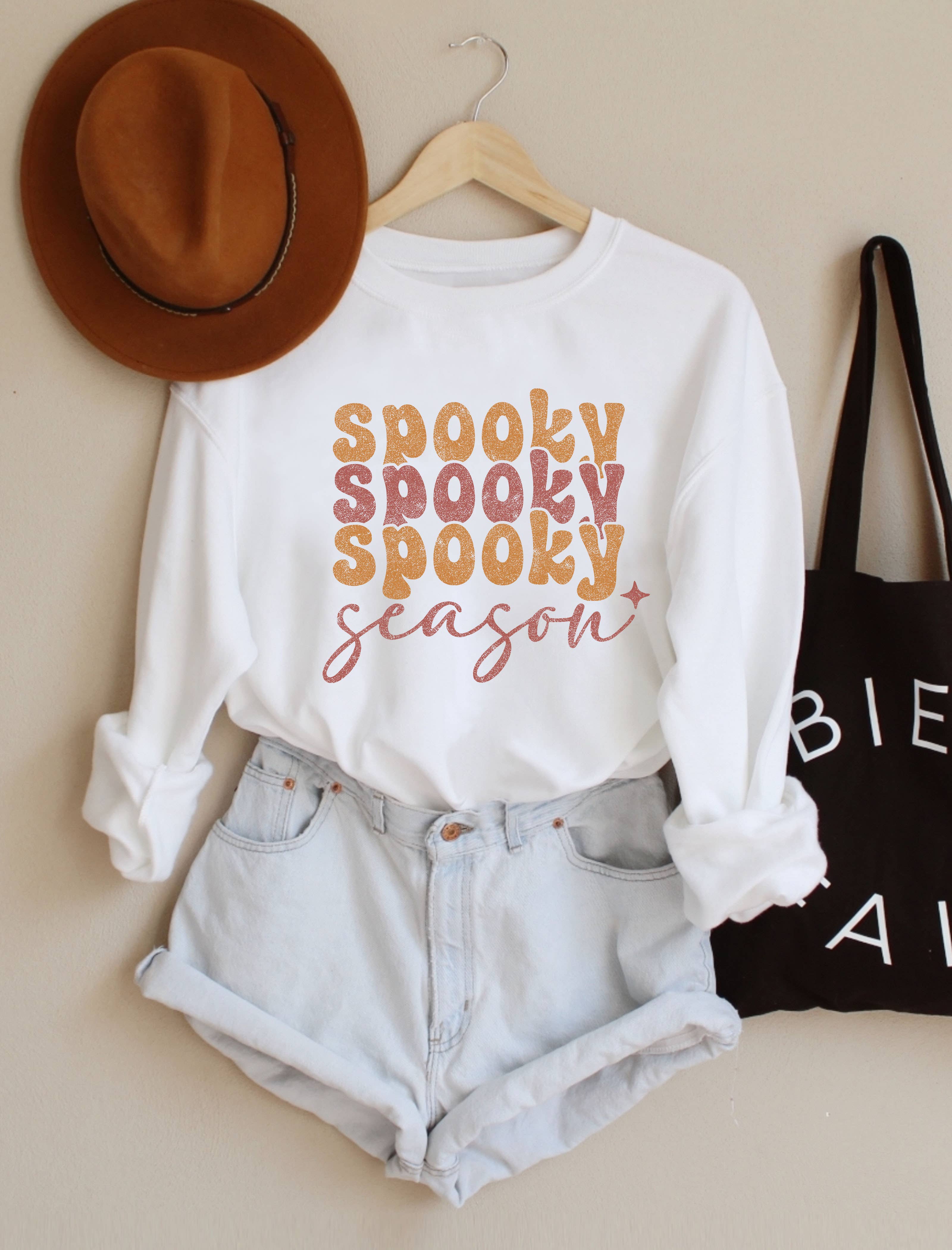 Introducing a new design in the shop! Added to my Halloween collection is the "Boot Scootin' Spooky" Embroidered Crewneck. Details: - Material: Gilden 50/50 crewneck. - Color: Sand