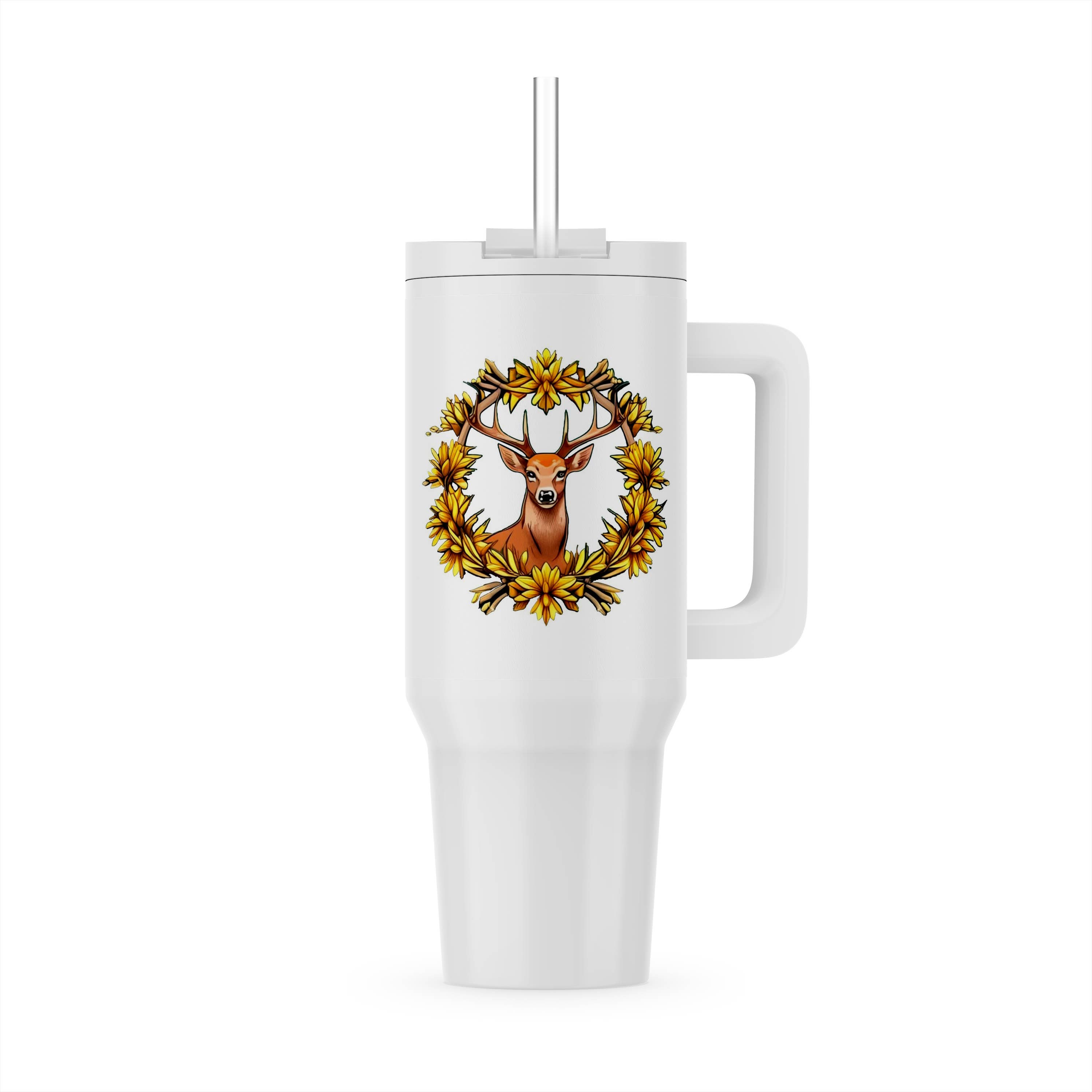Attention business owners! Discover the Deer Print Design 40 Oz Tumbler for Men, a captivating addition to your wholesale collection, available on Katydid Wholesale via Faire. This sleek black tumbler features a mesmerizing metallic silver deer design that exudes a sense of refined elegance. With its practical handle and included straw, this tumbler offers both style and convenience, catering to the needs of your discerning customers. Don't miss out on the opportunity to stock the Deer Print Design 40 Oz Tumbler for Men in your store. Shop now on Katydid Wholesale via Faire and provide your customers with a remarkable product that reflects their individuality and style. 40 ounces includes reusable plastic straw all-day chill or heat stainless steel interior dishwasher safe screw-on plastic top with straw opening adjustable straw cover for easy travel easy-to-hold handle fits in car cup holder (3” diameter at base)