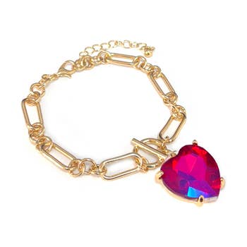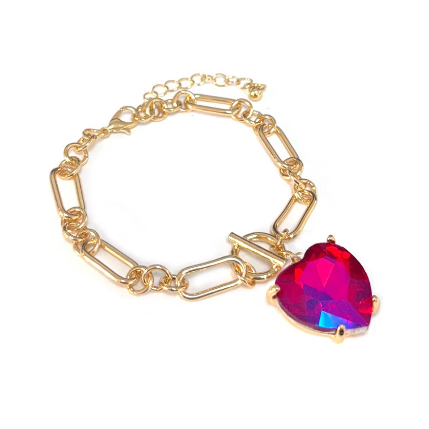 Gold Chain 3D Red Heart Bracelet|8 inches