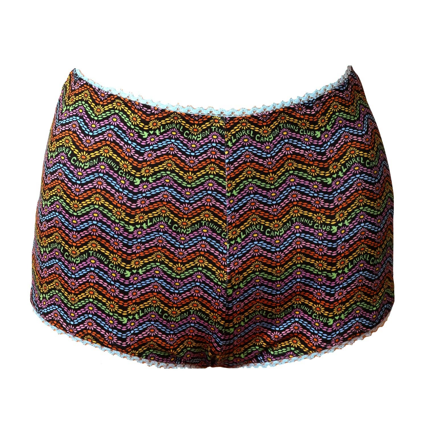 SKU: BKBT01-MR-XS Made in United States Aesthetic: Active and Retro / vintage Care Instructions: Machine wash Color: Multi-Colored and White Embellishment: Lace Fabric: 88% Recycled Poly, 12% Spandex Fit: Contemporary Occasion Theme: Everyday Occasion: Outdoor Adventures and Resort / Vacation Pattern: Rainbows Season: Core Product Language: English Weight: 226.8 g (8 oz)