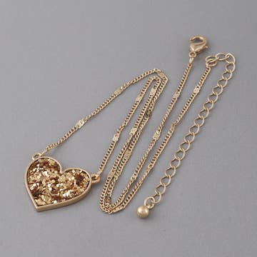 Heart's Accelerated Ball Chain Necklace Gold - Black Druzy