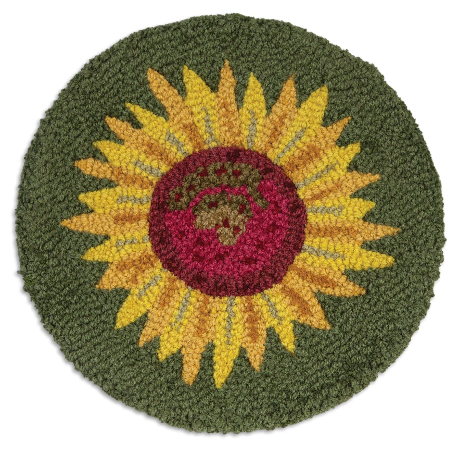 Whether you use it on a chair at the kitchen table, stool at a bar or a bench in the entryway these 14" Hooked Chair Pad will make an impression. Made from 100% natural wool with a cotton backing they are artist-designed in Vermont and New England. Each pad is handcrafted by skilled artisans in India. Member of the Fair Labor Association.
