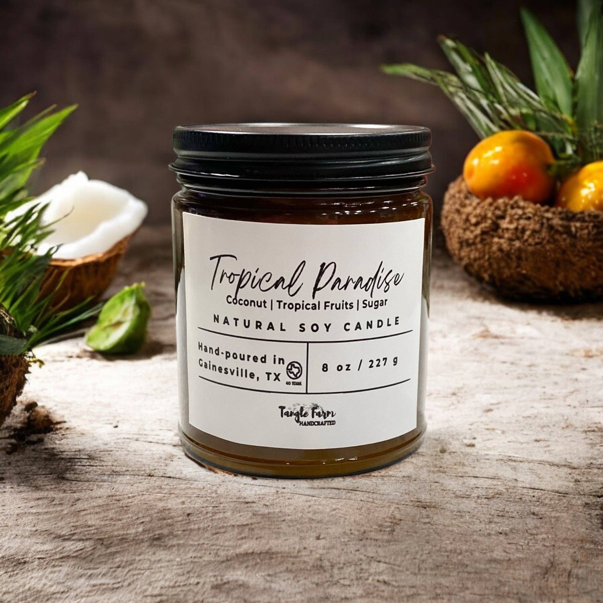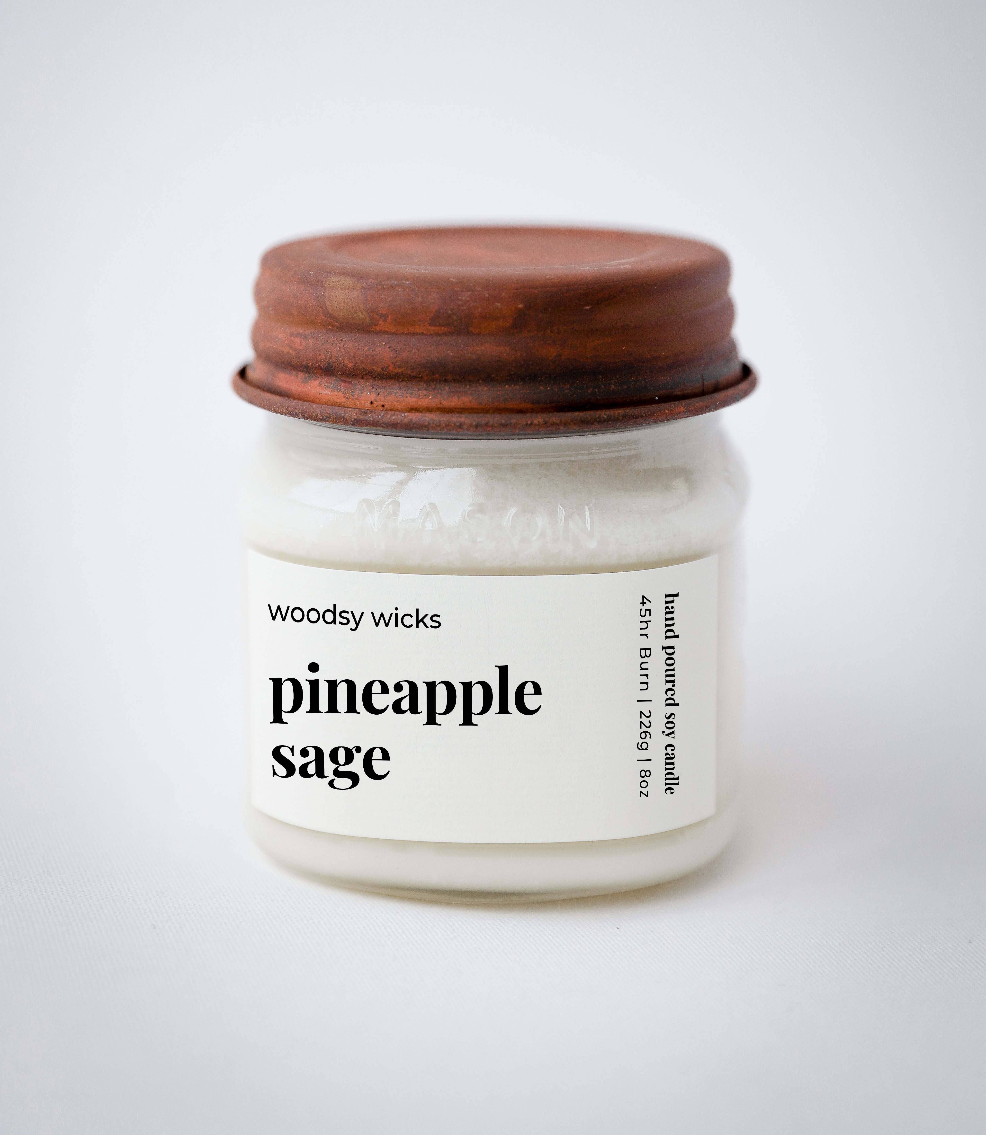 Think of fresh-cut pineapple with the sweetness of crystallized ginger. This earthy and tropical scent will transport you to a tropical island. For people who enjoy the fruity scent of pineapple with a hint of warmth Can't Decide? Order a FREE Scent Sampler NOTES Top Notes Pineapple and Ginger Middle Notes Cinnamon | Palm | Green Leaves Base Notes Sage | Allspice 8 oz jar Up to 30-hour burn time Paraben-free & cruelty-free (not tested on animals) soy wax candles Hand-Poured Reusable Jar SLS + SLES Free Phthalate Free Fragrance Vegan How to use our candles On your first light, allow the entire surface of wax to melt — a minimum of 3 hours. That first burn is the most important. Trim the wick to 1/4" each time before lighting and enjoying Do not burn the candle for more than four hours at a time When there is 1/4" of wax left in your candle remove the remaining wax & upcycle the glass* Never leave a candle burning unattended