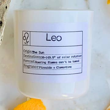 Charismatic, Brave, Glamorous Introducing our Leo-inspired candle, a bold blend crafted to capture the radiant and charismatic essence of the fixed fire sign. Infused with the vibrant notes of coconut and citrus, balanced with the creamy sweetness of vanilla and the warm allure of amber, this candle embodies Leo's magnetic presence and zest for life. Light this candle to create a luxurious and energizing ambiance that celebrates Leo's passion, confidence, and love for the spotlight. Embrace the regal spirit of Leo and let this captivating fragrance fill your space with warmth and brilliance. This 8 oz. candle comes with a crystal that has been hand selected to amplify the Leo energy it gives as it's burning. Leo candles with a crystal will include an intuitively selected citrine or carnelian. Scent Profile: Top Notes - Bergamot, Orange, Lemon Middle Notes - Coconut, Gardenia, Pineapple Base Notes - Musk, Amber, Vanilla