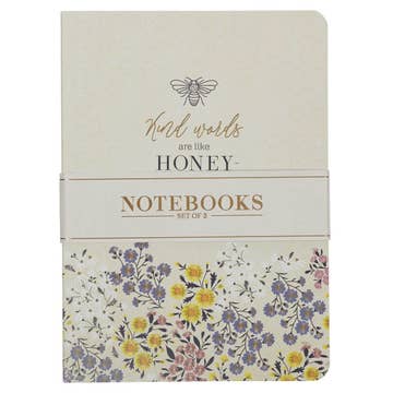 The Kind Words Are Like Honey Large Notebook Set includes three enchanting designs centered on bees, each with a distinctly different look. With three notebooks in the set, you will have more than enough space to plan spontaneous acts of kindness. Gold-foiled, yellow, blue, and white bee design, Gold-foiled lettering, Kind words are like honey, sweet to the soul, Proverbs 16:24, Be kind always, Kindness is Like Honey Collection, 3-piece notebook set, Large notebook set, Heavy-duty cardstock covers, 64 lined pages each, Wrapped in o-wrap, Set size: 8.5" x 6.2" x 0.6" (216 x 157 x 15mm) Individual notebook size: 8.5 x 6.1" x 0.15" (216 x 155 x 4mm)