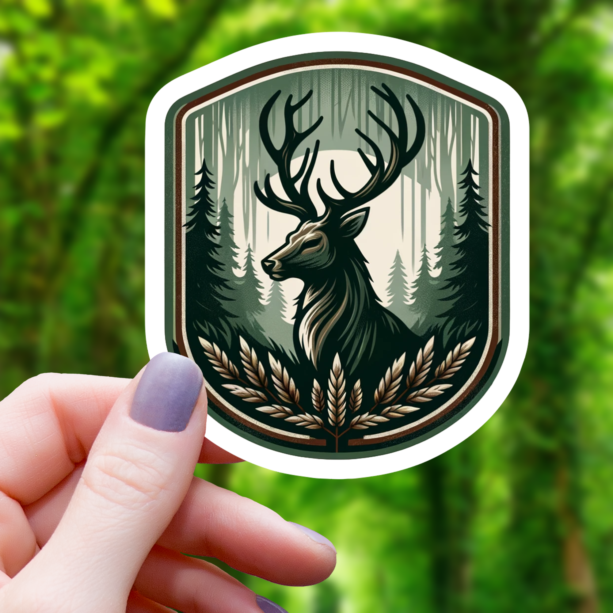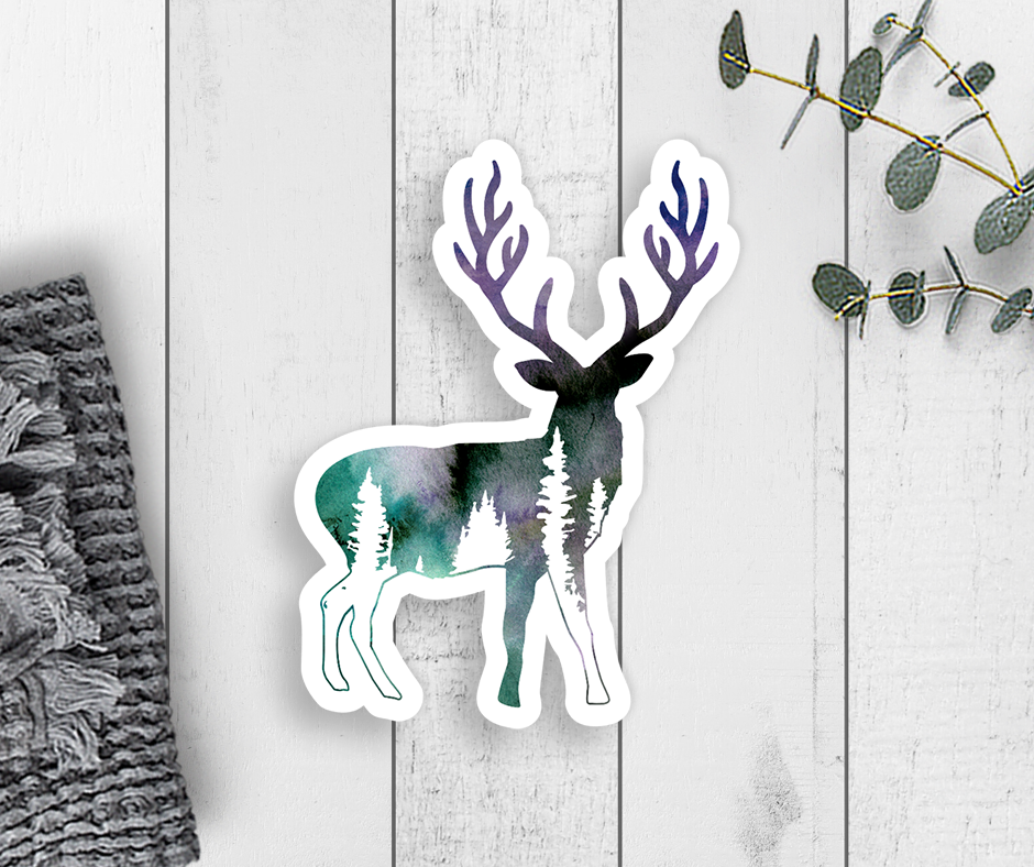 Deer in the Forest White Vinyl Car Window Decal (Packaged)