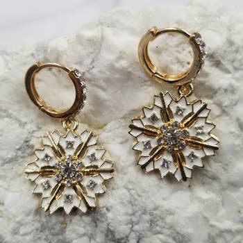 Embrace the holiday spirit with Jewelry Max's Christmas Theme Snow Flake Earring. Crafted to perfection, these 1 x 1 inch dangle earrings are inspired by the beauty of winter, featuring a stunning snowflake design. They're an ideal accessory to complete your festive look. Be it for a Christmas party or a cozy family gathering, these earrings will add a touch of elegance and joy to your style. Make your holidays sparkle with Jewelry Max!