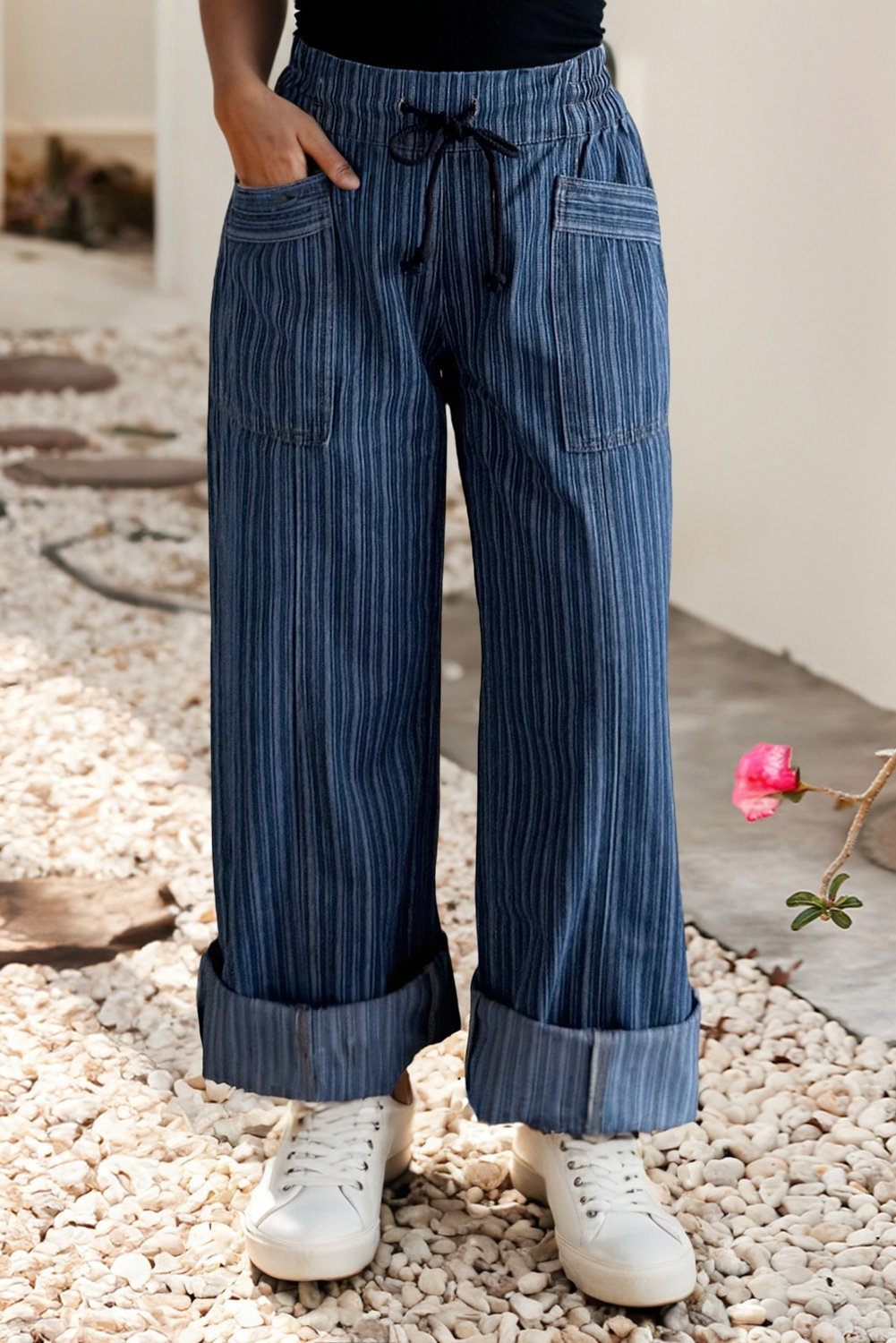 Ruffle Detailed Wide Denim Pants -Statement Ruffle Detailing for a Playful Touch -Wide-Leg Silhouette for a Trendy, Relaxed Fit -Classic Denim Fabric with a Soft Feel -High-Waisted Design for a Flattering Shape -Perfect for Casual Outings, Street Style Looks, or Weekend Wear: Adds a fun twist to your denim collection. -Pair with a Fitted Top or Crop Tee: Balance the volume for a stylish, on-trend outfit. Tags: Wide-Leg Pants, Denim Pants, Ruffle Detail, Casual Fashion, Trendy Bottoms MATCHING TOP : ILT5918