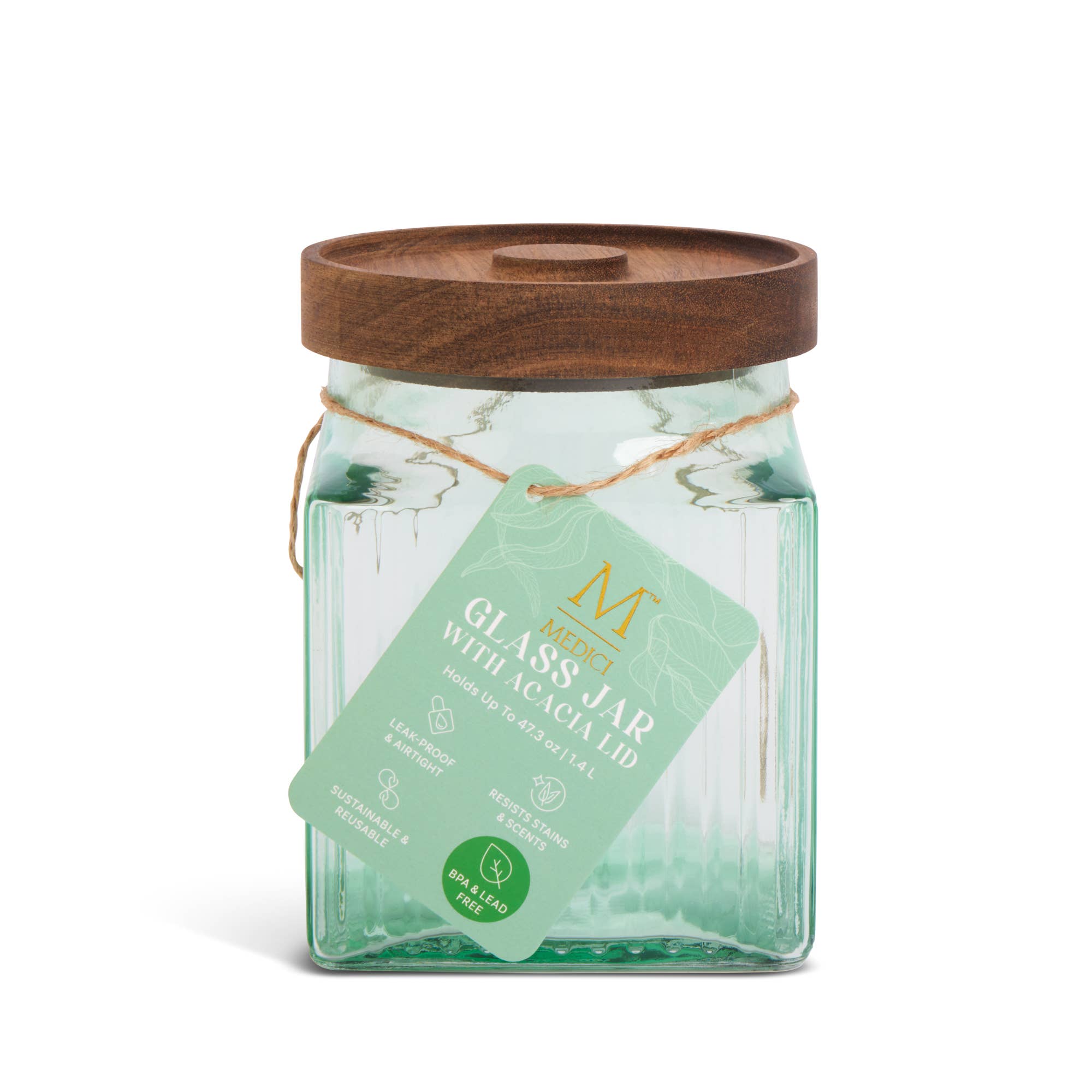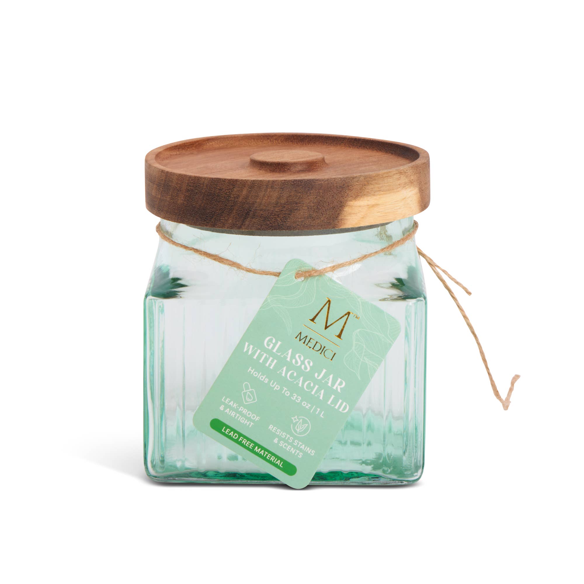 33oz Square Ribbed Glass Jar w/ Acacia Lid - Anastasia