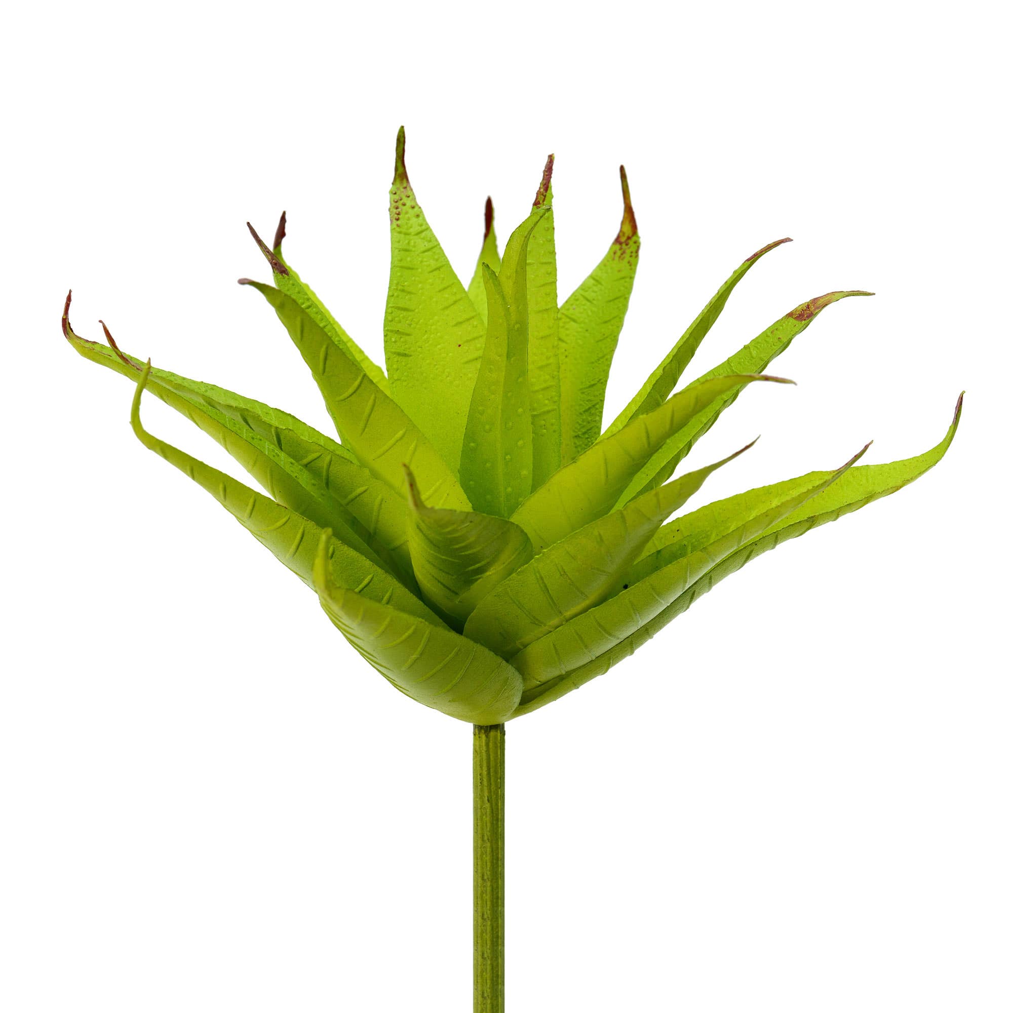 Vickerman 6.5" Artificial Green and Red Aloe Vera Pick. This Decoratvie Pick is made of durable Polyester and is maintenance free. It comes 3 per pack.