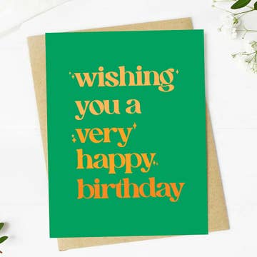 Celebrating the men in our lives. Bro, guys or men, whatever you want to call it the guys deserve good greeting cards too. One color letterpress. Shown in neon blue ink with lime envelope. Our letterpress is printed on 100% cotton paper that is left over from the garment industry making it a green product. We print everything by hand in our Long Beach Studio. A2 greeting 5.5" x 4.25" paired with a lime envelope packaged in a cello sleeve birthday card for him, birthday card for brother, father, son, men