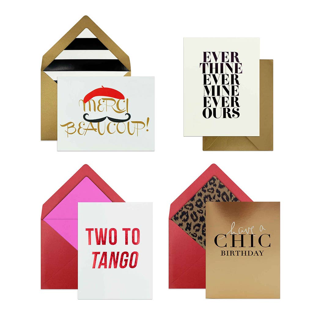 SKU: INVT-PO8-1 Made in Canada Card Count: 8 Color: Black and Gold Finish: Letterpress and Matte Occasion Theme: Bar & Bat Mitzvah, Birthday, and Moving & Housewarming Season: Holiday Season and Year-Round Theme: Family & Friendship Tone: Heartfelt Product Language: English Weight: 160 g (5.64 oz) Dimensions: 14 x 10.8 x 2.2 cm (5.5 x 4.3 x 0.9 in)