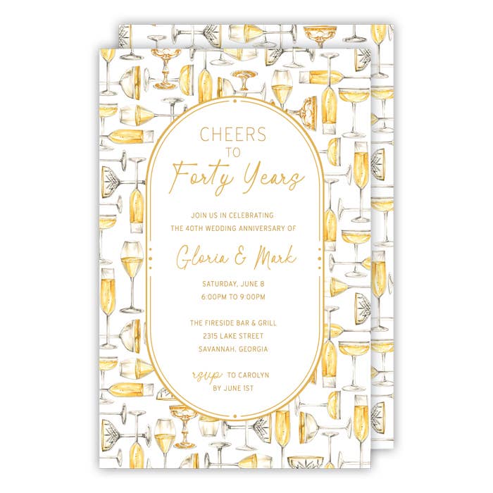 Inspired by modern luxury and bold, artistic flair, the “Wine & Dine With Us” invitations bring a chic, upscale vibe to any gathering. Think striking abstract patterns in sleek black and white, balanced with a luxe gold envelope. The design combines sophisticated brushstroke details with a clean, minimalist layout, perfect for a stylish dinner party. With no need for costly printing, just add your personal touch using Higgins Ink or faux calligraphy for that bespoke charm. This set of 8 is a must-have for those who appreciate artful elegance. ● Dimensions: 10.8 x 14cm (4.25" x 5.5") ● Weight: 0.0194 kg (0.04lb) ● Features: debossed typography on premium stock, paired with metallic gold envelope and matching liner