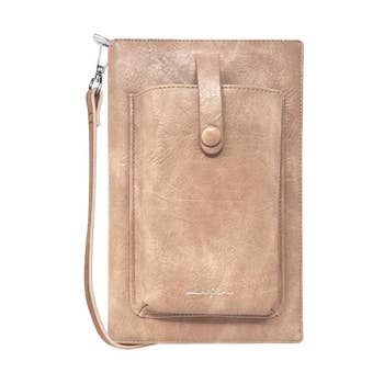 Kedzie®️ Eclipse Smartphone Crossbody When all you need is your phone, keys and wallet, this compact bag is the perfect choice. Part of the Eclipse Collection, this stylish crossbody can also be worn as a wristlet. Order Eclipse Wristlet Straps for an easy multi-sale program! Quick Features: Smartphone pocket with snap closure Zip-around main compartment 6 built-in card slots Interior zippered valuables pocket Removable, adjustable strap (55” fully extended) Bag dimensions: 4.25" W x 7.5" H x 2.2" D 100% vegan leather Merchandising Details: Peggable hardware with boutique hang tag Pair with Kedzie Eclipse Wristlet Straps, Crossbodies or Tandem Clutches