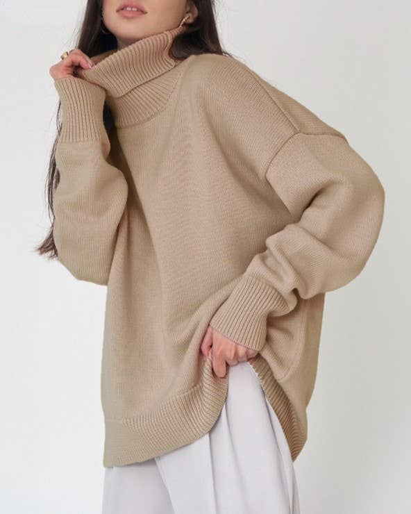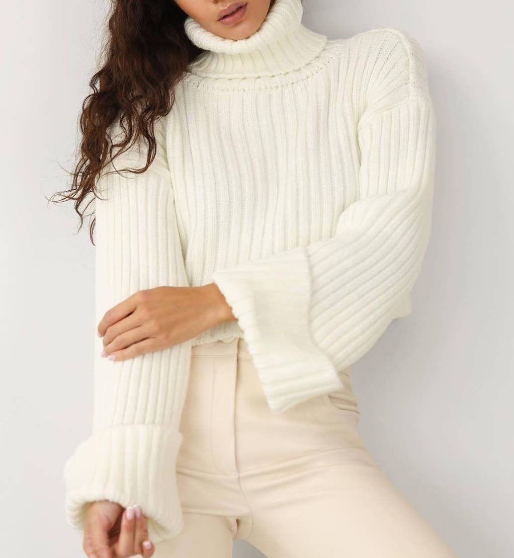 Diamond-Shaped Turtleneck Pullover Knit Top