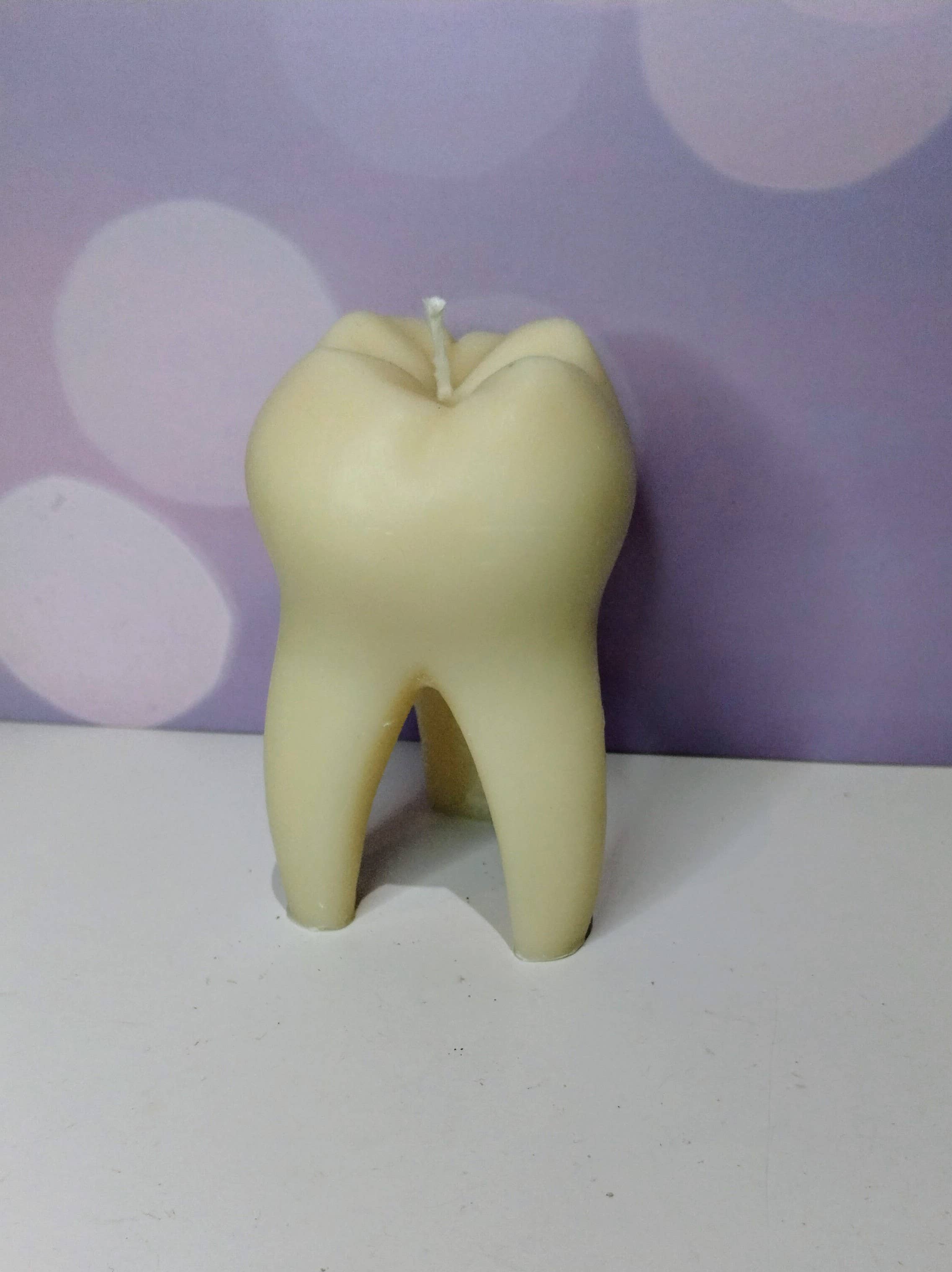 This Mini Tooth Candle s perfect for dental enthusiasts and oddity collectors alike stands at 2" tall unscented