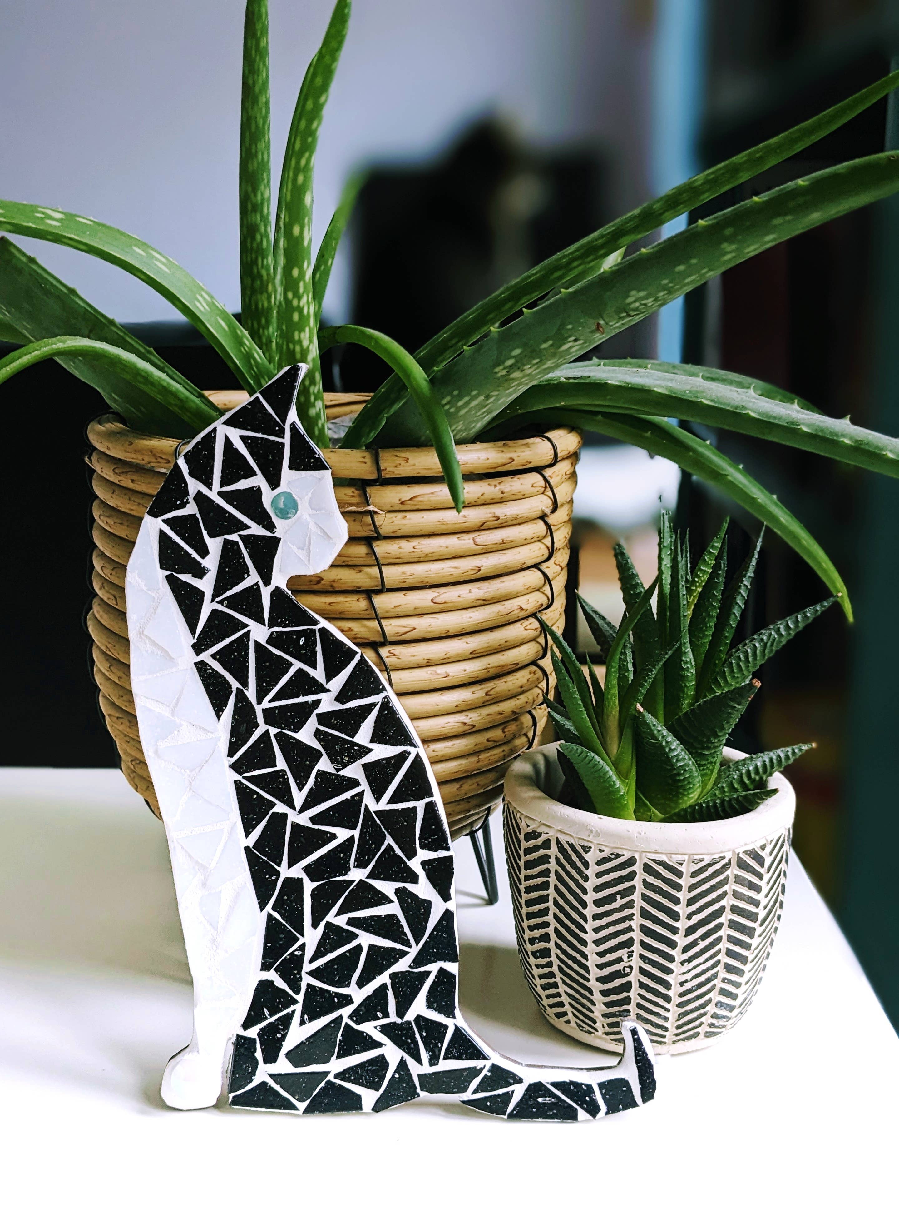This day of the dead skull DIY mosaic kit comes with pre-snipped vitreous glass and pate de verre mosaic tiles, darling dots and drops. Mosaic Kit includes: 1 x 20cm MDF skull shapes Hand snipped glass mosaic tiles Iridescent darling dots and drops Hanging twine 50g PVA glue 100g black grout 1 glue spreader Mosaic & grouting instructions