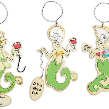 Elevate your gifting with our fun, quirky, coastal bottle charms. They are perfect for hosts, housewarming parties or birthdays, etc… The oyster shells are harvested, cleaned and hand crafted to create unique ornaments or charms. Each shell is one of a kind and measures 2.5 to 4 inches long. The 20mm beads are strung with natural, gold and recycled glass beads in shades of blues & greens.