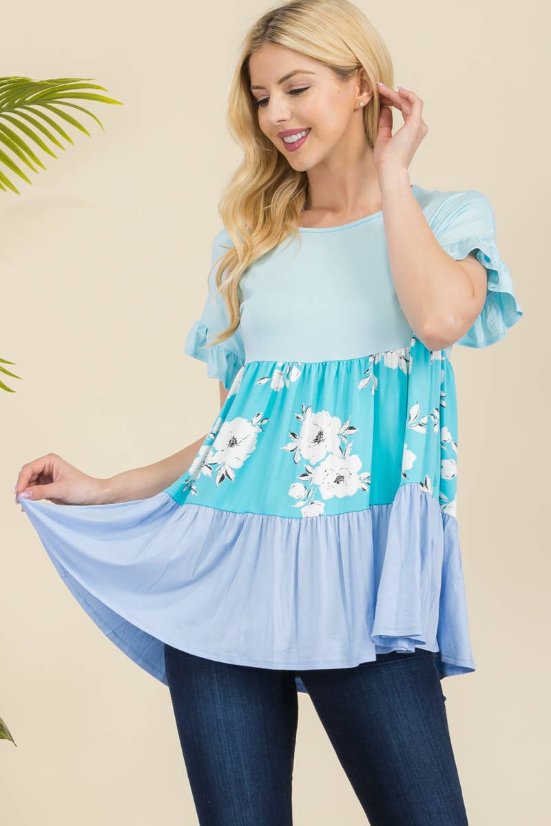 Avery - Wholesale Tunic - Women's - AV1129-JULIA GEO PRINT COLOR BLOCK TOP1